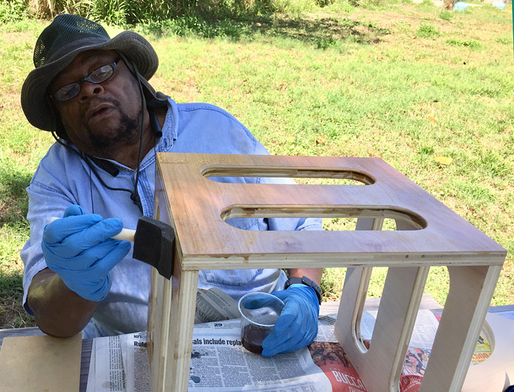 This is a knock-down Dobsonian base where the sides come off and the front folds down to fit in a small car. Bill and Ralph designed this and they did a great job. |